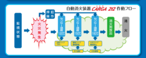 2. 「カルガ」の構成は、火災の発生を自動感知する感知部を有し、消火薬剤放出口と消火薬剤貯蔵容器とが銅管で接続されており、消火薬剤と検知部、放出口が一体となったシステムです。