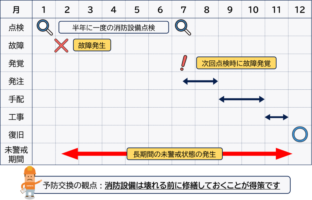 ・保険適用:点検や報告を実施していない状態で万が一火災が発生した場合、管理権限者が責任を追及されることがあります。悪質な場合には、重過失として保険金が支払われない可能性もあります。