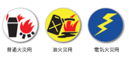 (A)普通火災・・新建材、木材、紙、繊維など、固体の燃えやすいものの火災に有効。