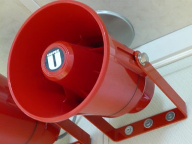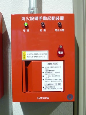 二酸化炭素放射エリアの入口等に設置されており、火災を確認し手動で二酸化炭素消火設備を起動するときに使う。扉の開放と連動して音声警報を発する構造になっている。