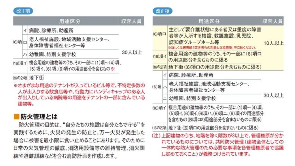 上記の火災をきっかけに、平成19年に消防法が改正されました。改正された消防法は2つあります。